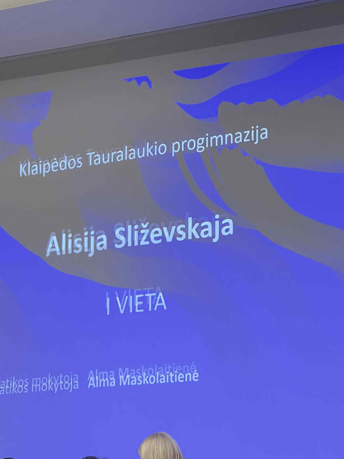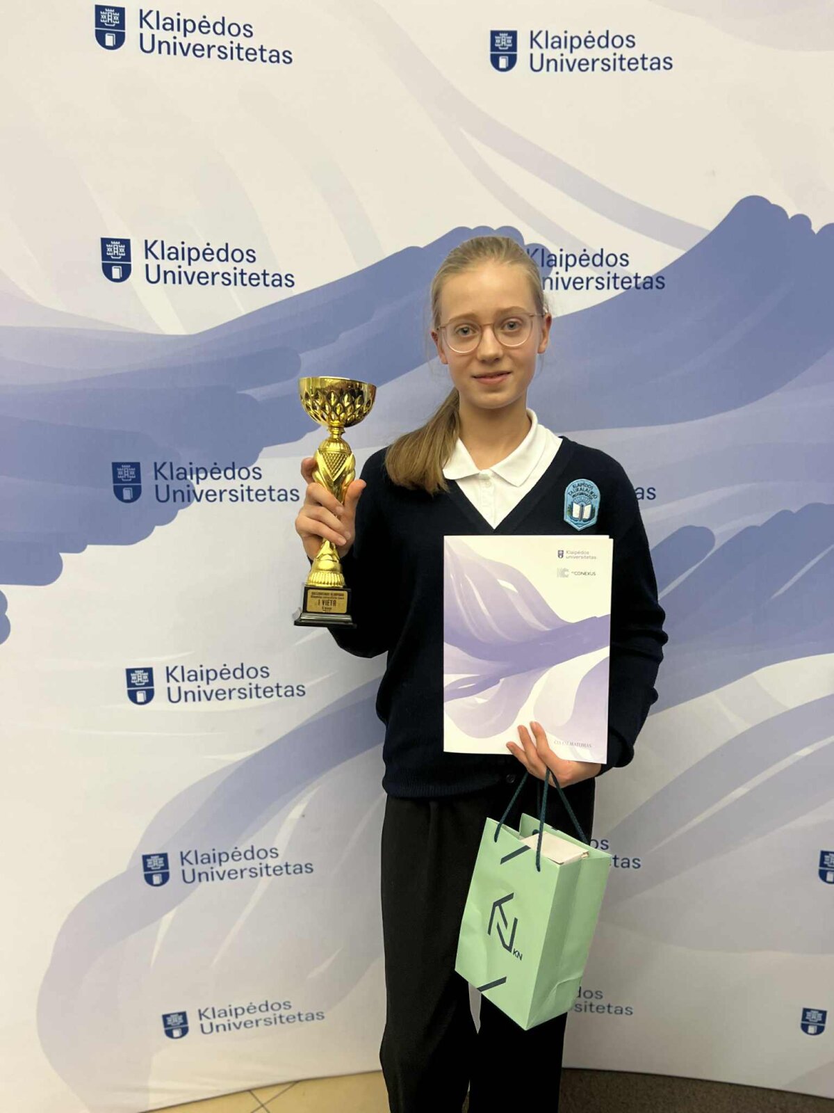 Džiaugiamės ir sveikiname Alisiją Sliževskają, kuri 6 klasių grupėje iškovojo 1-ąją vietą ir laimėjo Klaipėdos universiteto taurę!