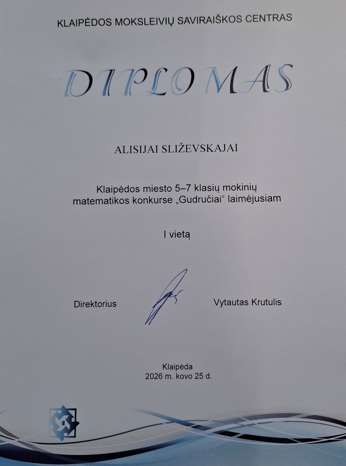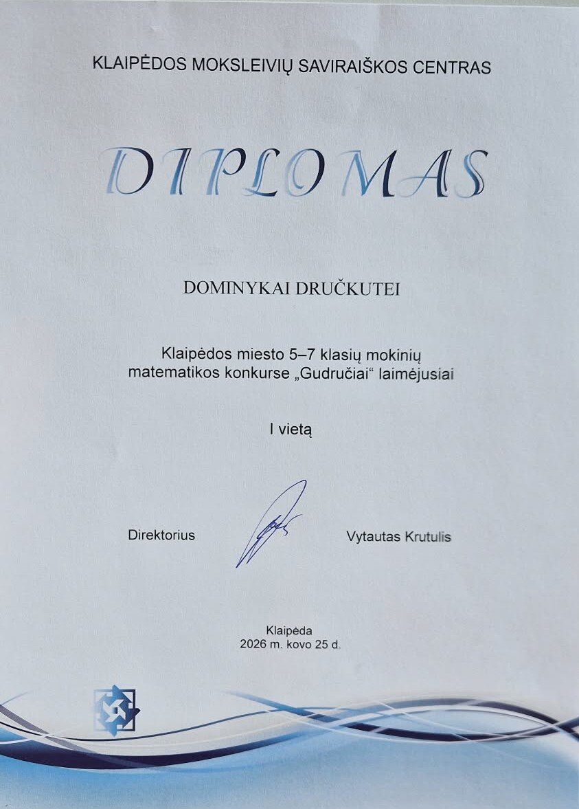 Laimėtos prizinės vietos matematikos konkurse „Gudručiai“