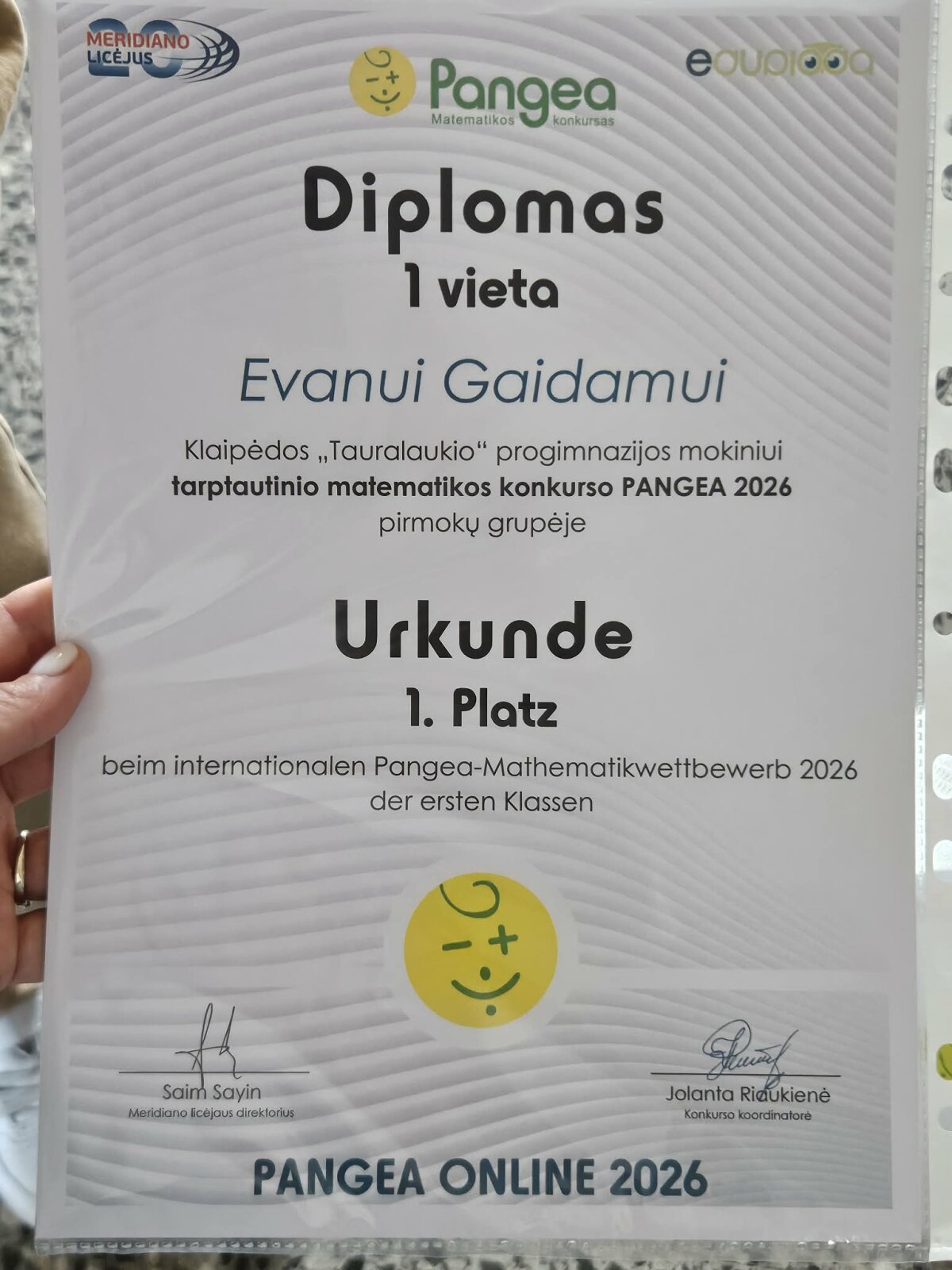 PANGEA laimėjimai 1c klasėje