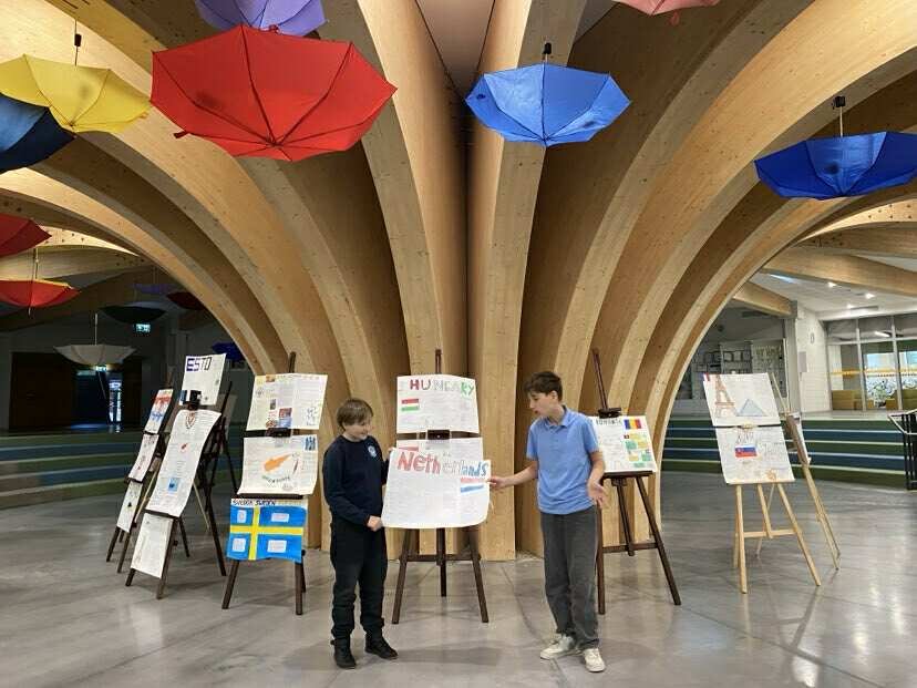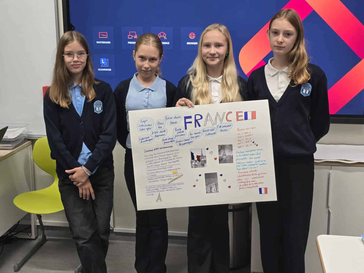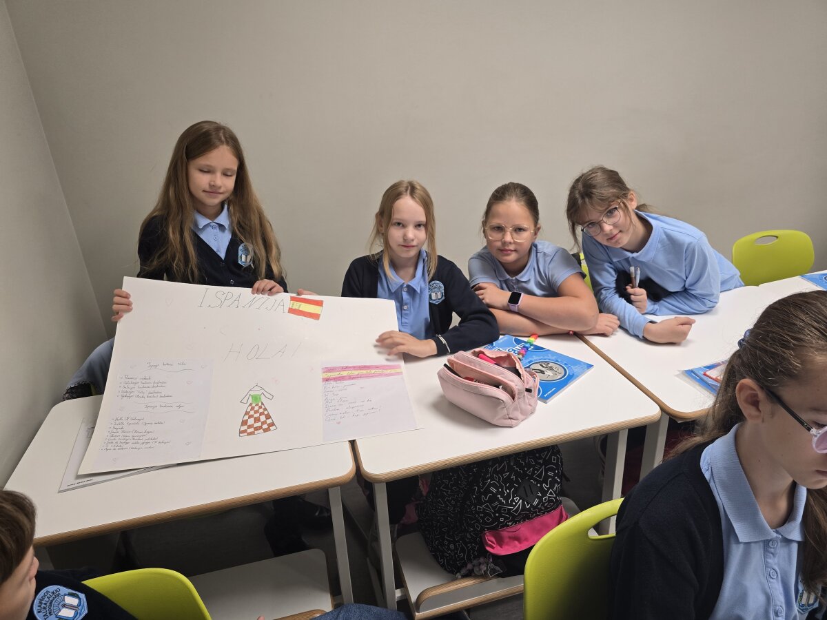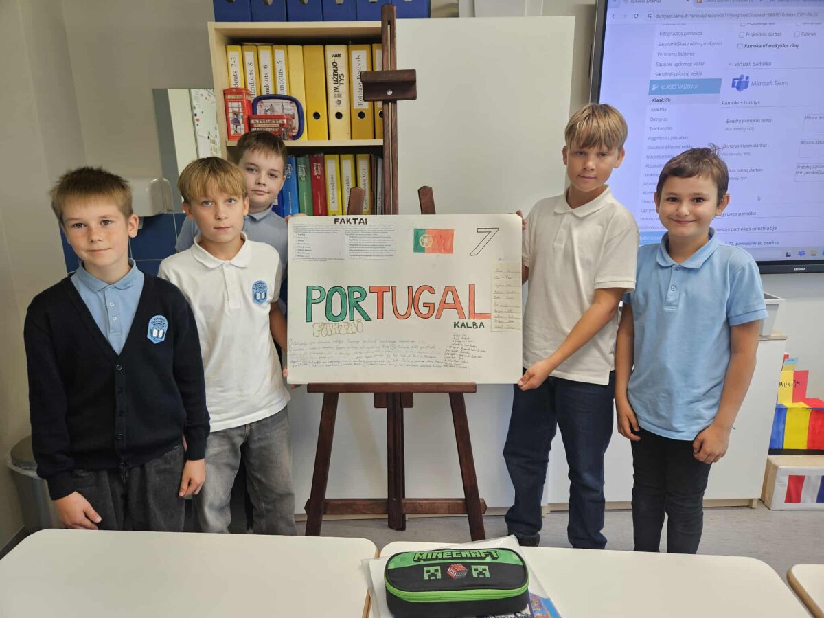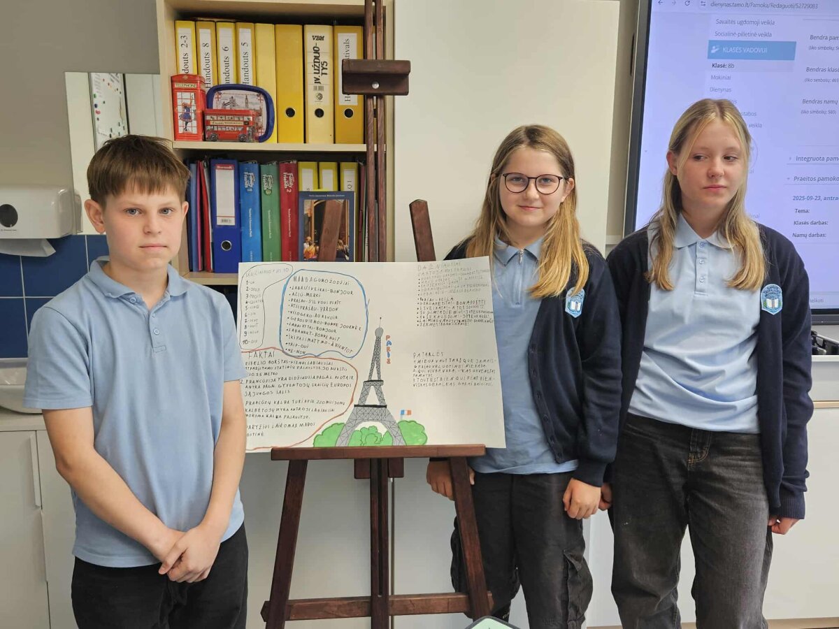 5-8 klasių mokiniai ruošėsi kelionei po įvairias Europos šalis. Projekte “Kelionė po Europos šalis” moksleiviai, pasiskirstę į komandas, pasirinko skirtingas Europos šalis ir ėmėsi kūrybinio darbo – ruošė spalvingus plakatus, pilnus vėliavų, žymių vietų, smagių faktų ir, žinoma, žodžių ar frazių tos šalies kalba! Kai atėjo metas pristatyti plakatus klasėje, kiekviena komanda tapo savo šalies ambasadoriais – drąsiai, kūrybingai ir su šypsenomis užsienio kalbų pamokose pasakojo apie pasirinktą kraštą, mokė klasės draugus naujų žodžių bei dalijosi įdomybėmis. Kiekvienas pristatymas buvo tarsi mažytė kelionė – be lagamino, bet su kupinu smalsumo lagaminėliu galvoje!
