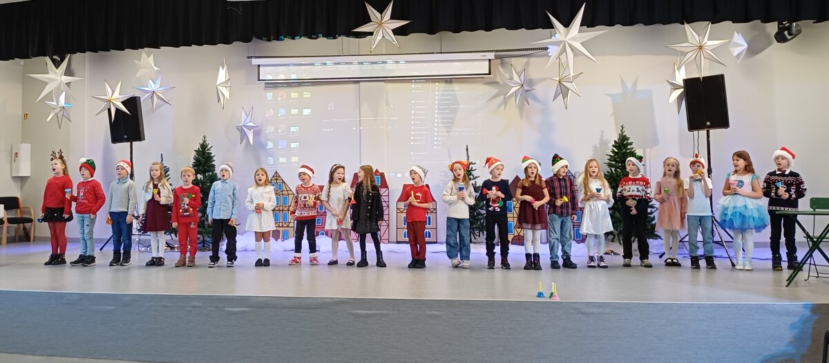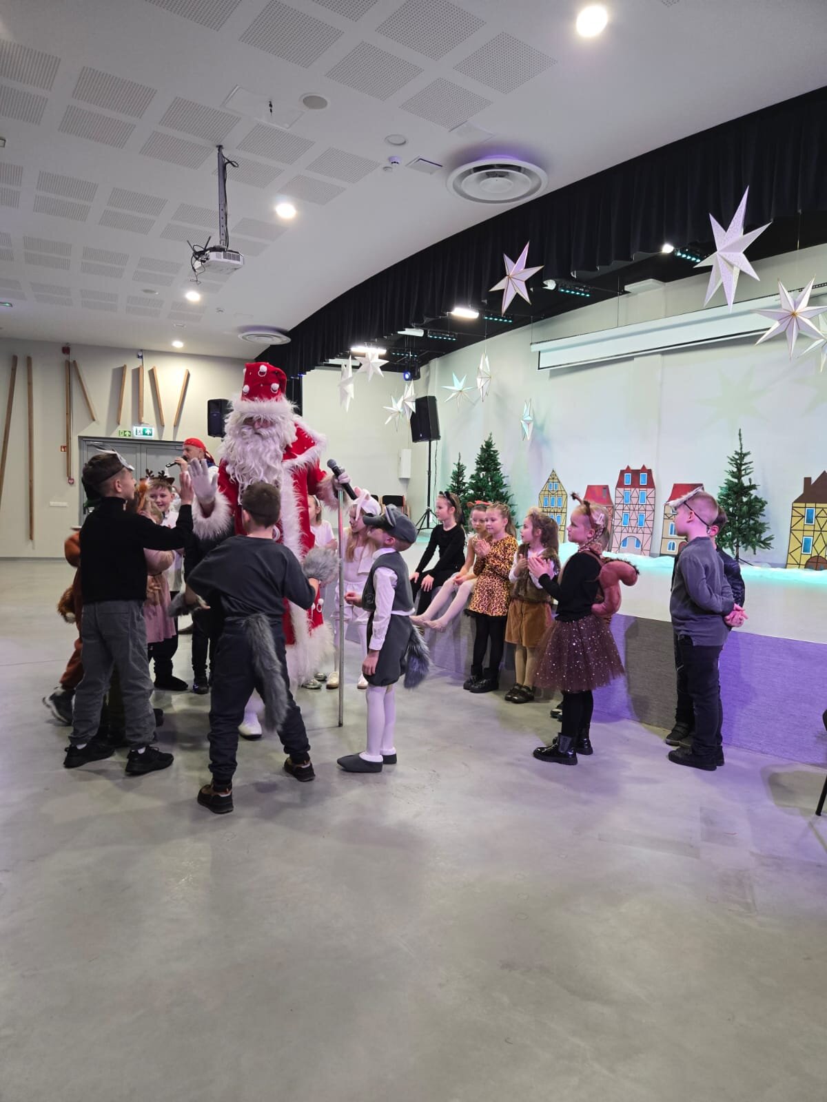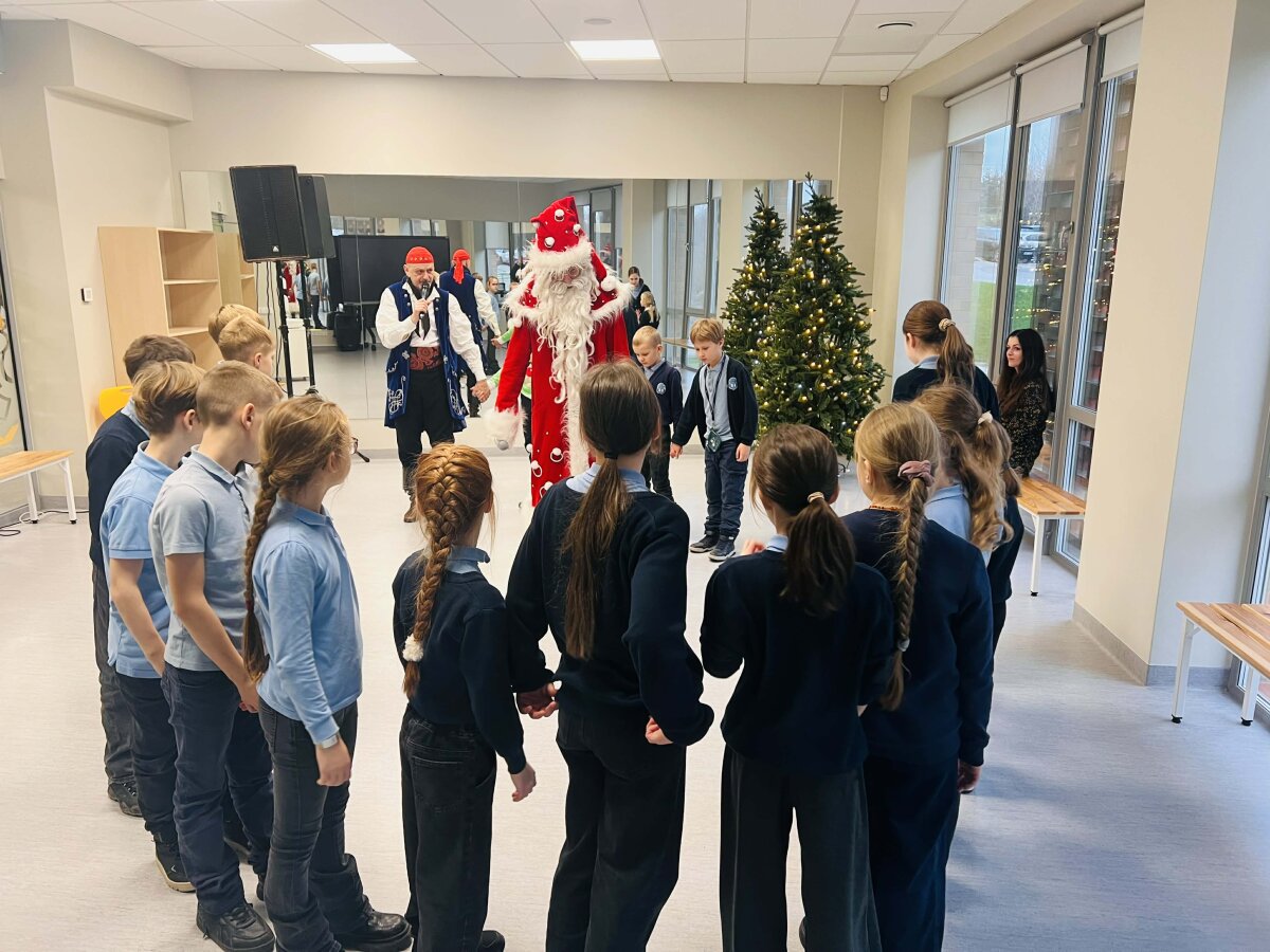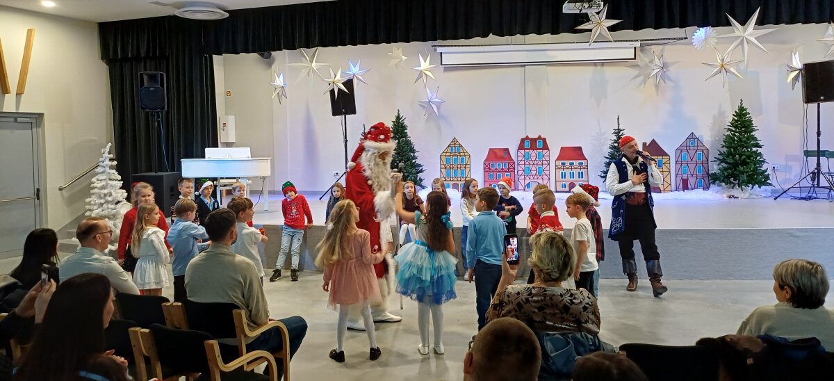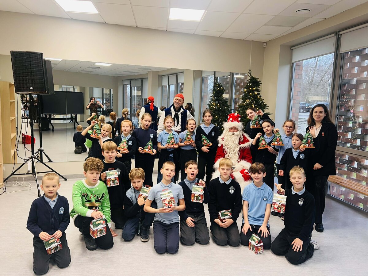 Gruodžio 22 dieną mūsų mokyklos 1a, 1b, 1c, 2a, 3b ir 3c pradinukai dalyvavo jaukioje ir džiaugsmingoje kalėdinėje šventėje su Flintu.